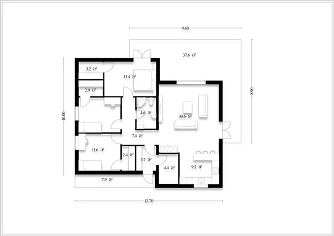 სახლის ფართობი: 123.0 მ2